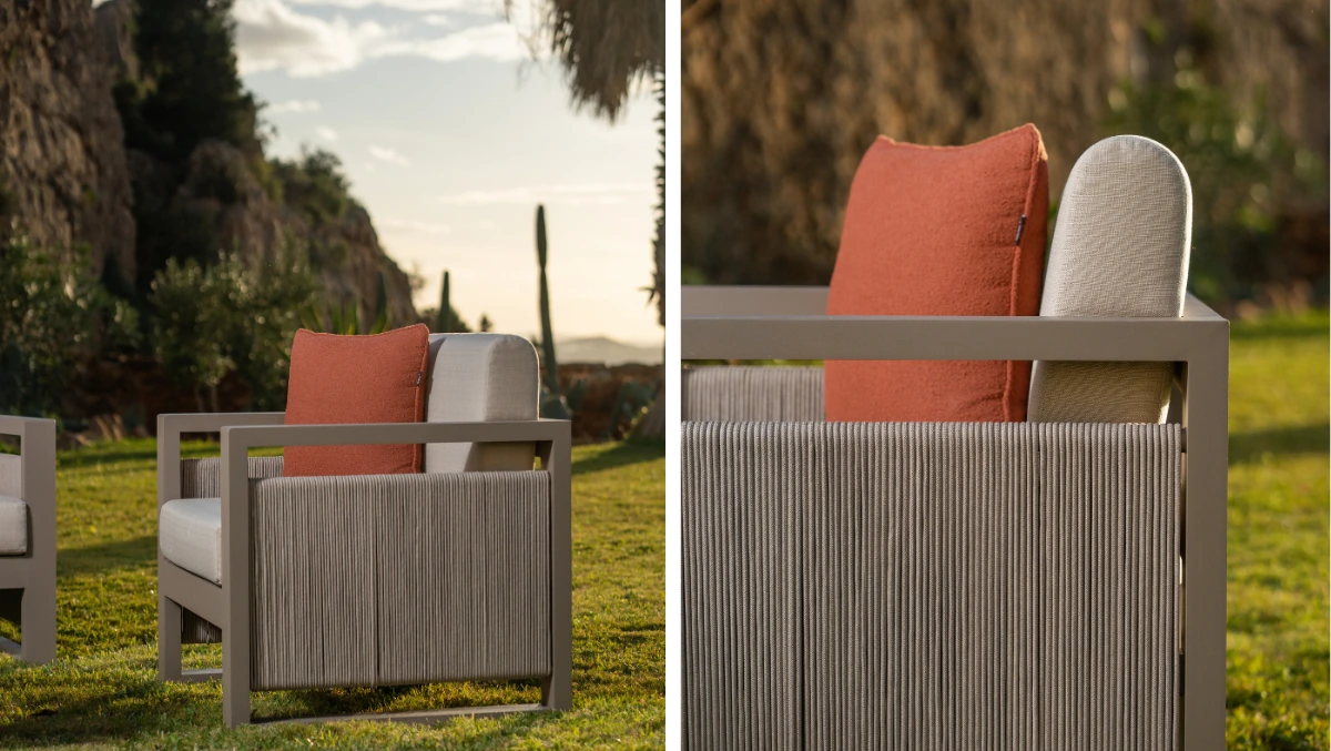 Paradis de Marseille – Luxe et confort en plein air Plongez dans l’univers du Paradis de Marseille, un salon d’extérieur qui combine élégance, confort et modernité. Sa structure en aluminium assure robustesse et durabilité, tandis que ses assises et dossiers en cordon offrent un soutien optimal et un style contemporain. Les coussins moelleux complètent l’ensemble pour un confort maximal. Conçu pour transformer votre terrasse ou jardin en un véritable havre de paix, le Paradis de Marseille séduit par ses lignes raffinées et ses matériaux résistants aux intempéries. Chaque détail est pensé pour offrir une expérience d’extérieur unique.